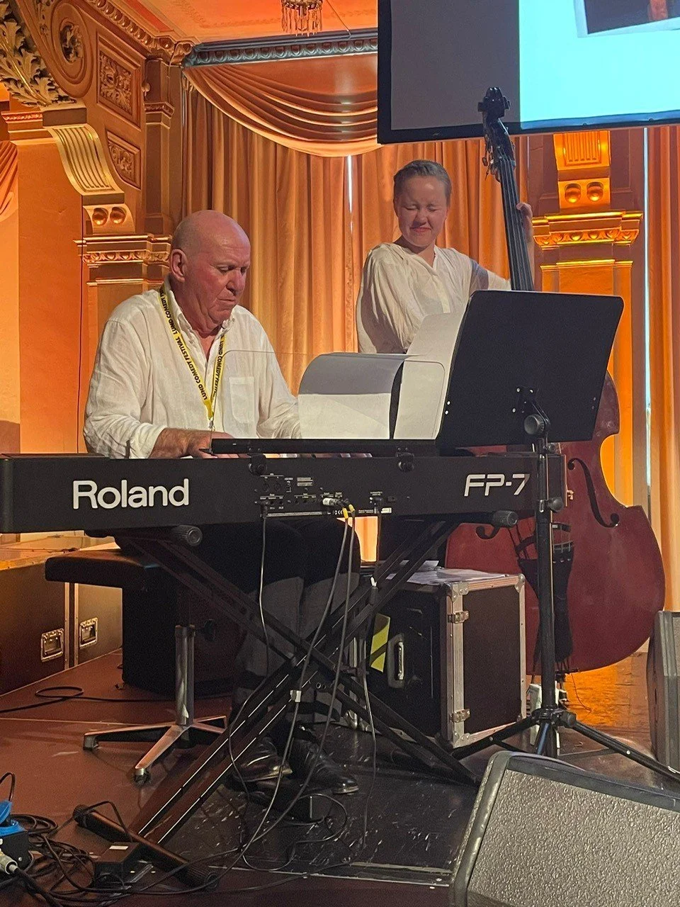 Pianist, basist och kompositör som ligger bakom det mesta av originalmusiken i mina föreställningar.